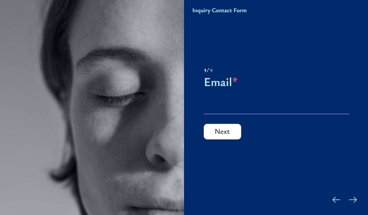 One question, one step - like texting a friend. Users see one field (Email) with progress (1/4) and Next button for guided steps. Best for higher completion rates.